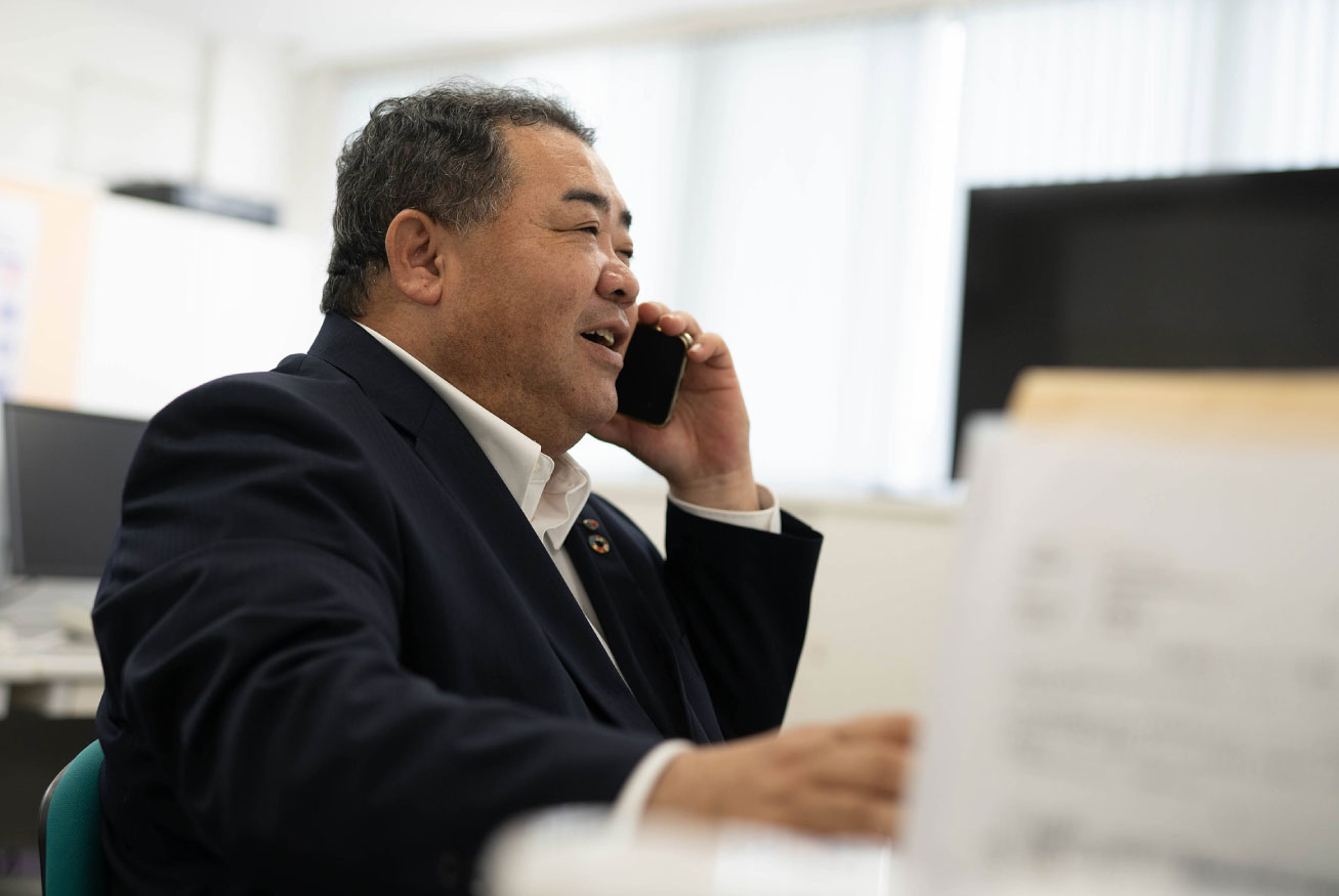 営業部に配属されてまだ日が浅いので、まずはご挨拶まわりや元請けの方との食事などを通して、顔を覚えていただくことを意識しています。同業者や発注者側である役所からの情報収集も行っており、気になる話があれば部長や社長に共有して、次の動きを相談するようにしています。
