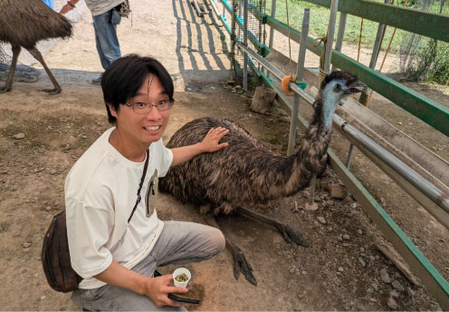 牧場や花鳥園など、動物と触れ合える場所に行くことが多いです。朝一で餌を持っていくと、お腹を空かせた鳥たちが一生懸命集まってくるので、それが一番楽しいですね。動物たちは、私にとってビタミンのような存在です。