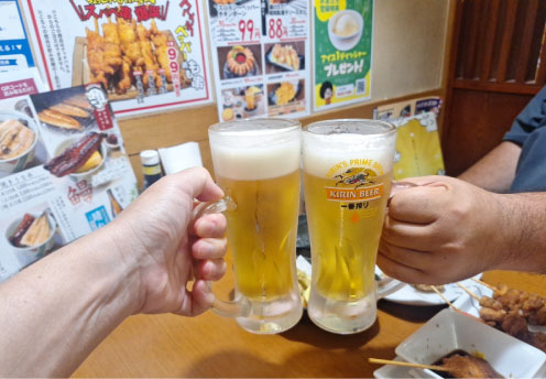 家族と過ごす時間が多く、たまにゴルフに出かけたり、お酒を楽しんだりしています。現場が一区切りついたときには、お疲れ様会を開くこともあり、平日の夜に会社の仲間とご飯に行くこともあります。