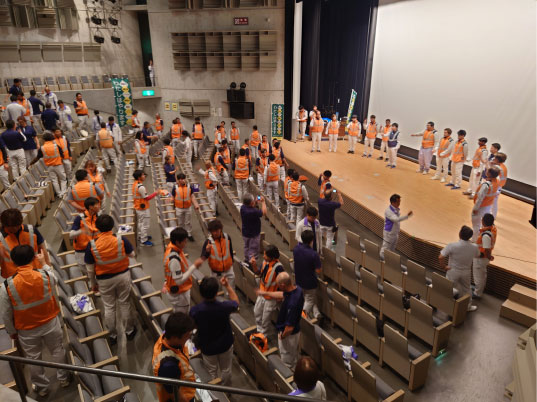 労働安全衛生法に基づき、業務に必要な特別教育や技能講習を実施しています。また、安全意識の向上を目的とし、安全衛生大会を開催するなど、全社員が安全に働ける環境づくりにも力を入れています。